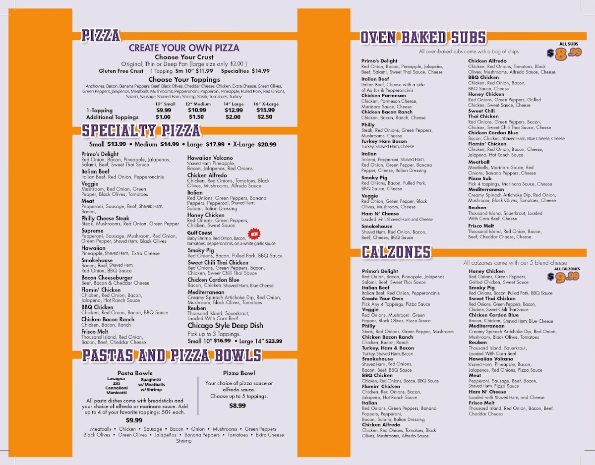 Fast service and attentive staff ensure a pleasant dining experience, whether you opt for dine-in or delivery. Don’t miss out on unique offerings like calzones and crispy wings, all crafted to satisfy your cravings at Primo's Pizza.